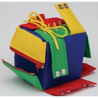 Ce cube d’activités permet à une personne âgée ou en situation de handicap de travailler ses capacités d’activités motrices fines et de faire un travail de rééducation de la main.