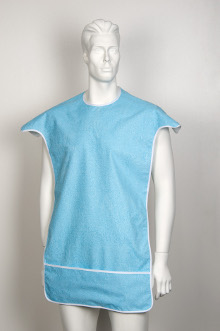 Cette serviette est idéale pour les patients agités ou désorientés. Elle assure une protection complète grâce à ses larges protections au-niveau des épaules et sa poche réservoir en base de la serviette. PVC éponge intraversable et imperméable. Fermeture réglable 2 pressions. Lavable à 95°C.